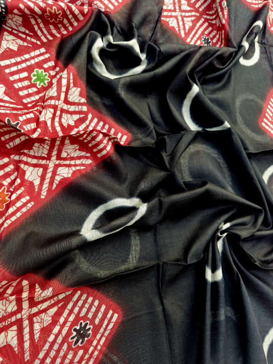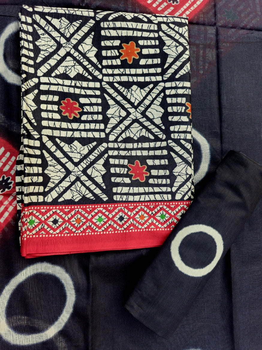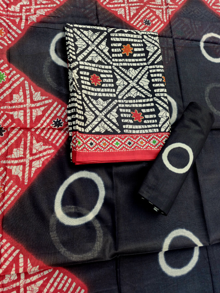 Upgrade your ethnic collection with this elegant Bandhani print cotton suit set in a creamish and black color combination. Crafted from soft, breathable pure cotton fabric, this unstitched salwar suit is adorned with traditional Bandhej (Bandhani) patterns, giving it a rich, cultural appeal with a modern touch.
