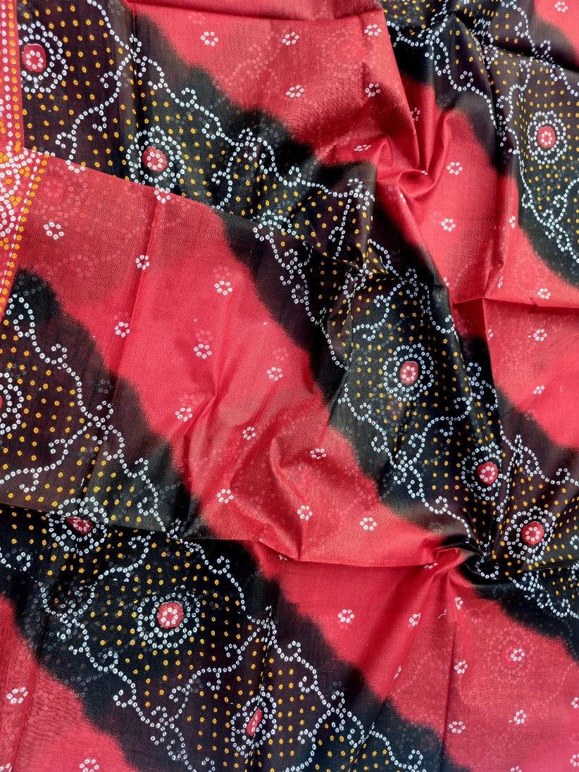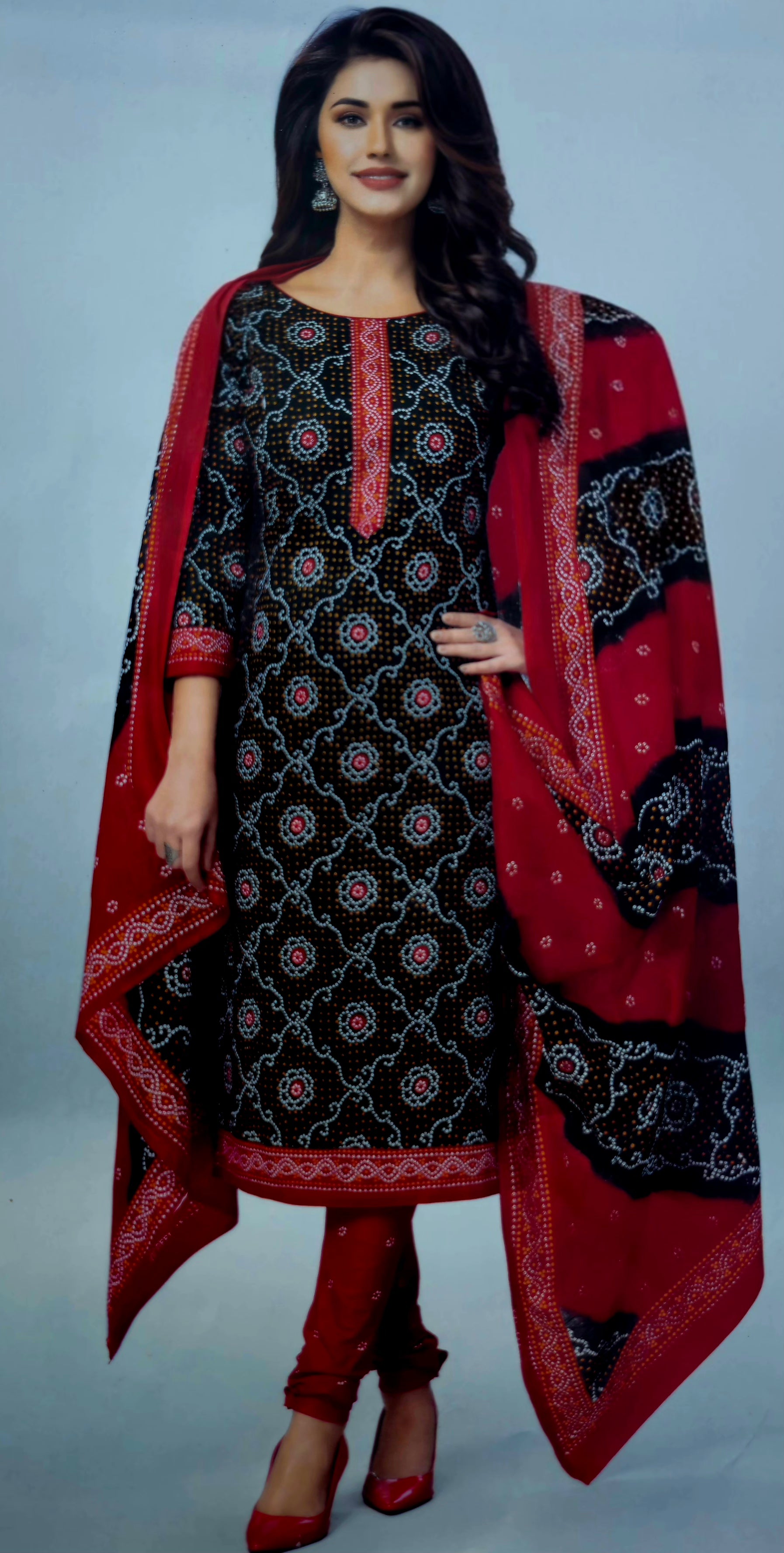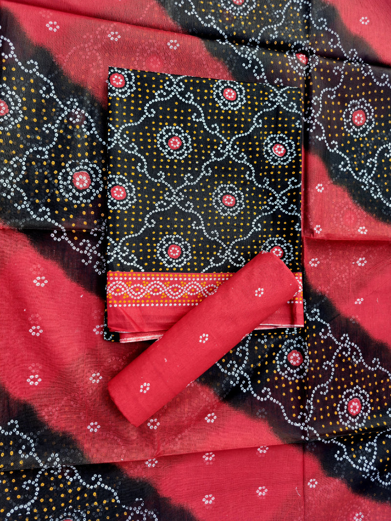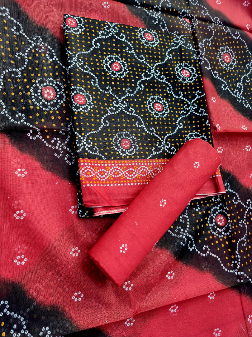 Bandhani Cotton Unstitched Suit Set – Black & Red
