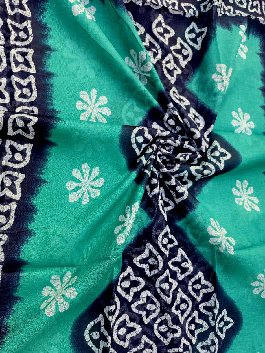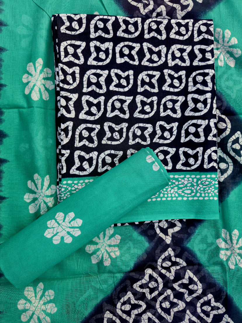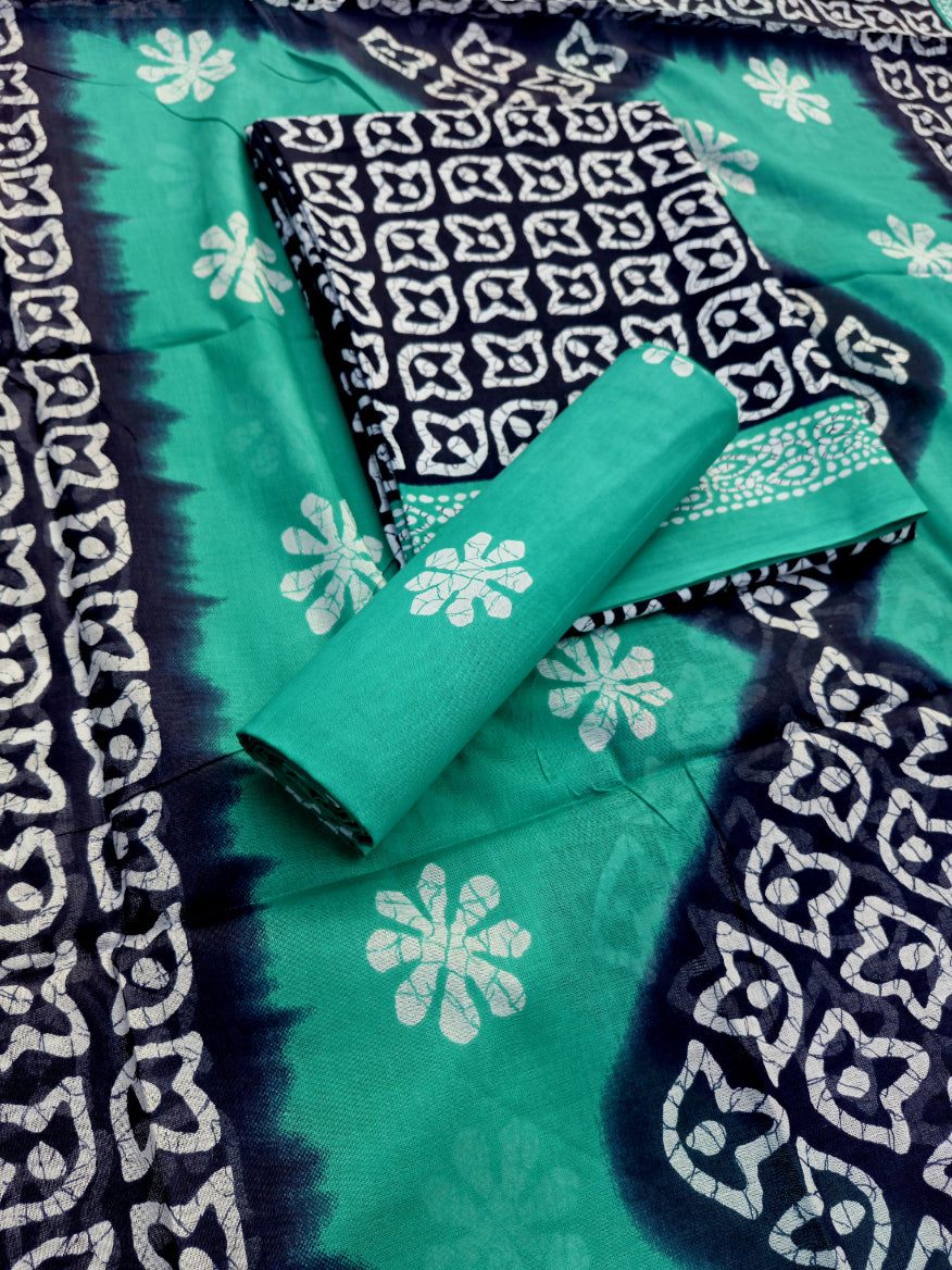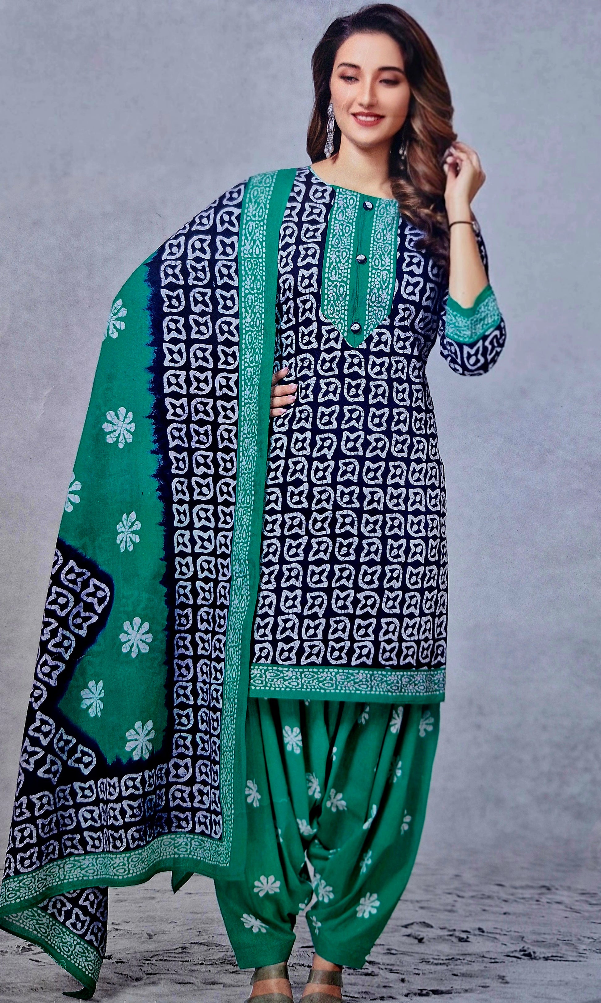 Bandhani Cotton Unstitched Suit Set – Deep navy & Tropical ramagreen.